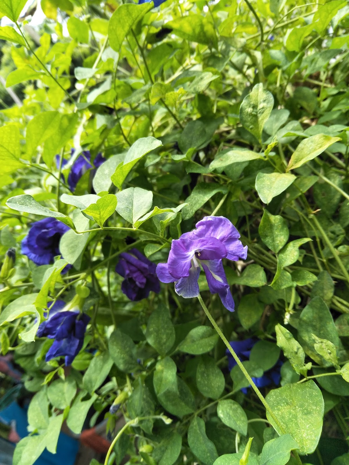 ที่เห็นในภาพนี้ปลูกอยู่ริมรั้วที่บ้านค่ะ เขาจะเลื้อยไปเรื่อย ๆ ค่ะ สามารถเก็บดอกไว้ขายได้ด้วยนะคะ ตามที่ค้นจากเว็บไซต์ต่างๆที่ให้ความรู้เกี่ยวกับสมุนไพรตัวนี้ คือ ดอกอัญชันหรือในชื่อภาษาอังกฤษ Butterfly pea เป็นพืชไม้ล้มลุก ส่วนใหญ่จะเห็นมีดอกสีน้ำเงินไปจนถึงม่วงเข้ม มีต้นกำเนิดของเขาอยู่ในแถบอเมริกาใต้ เหมาะสำหรับปลูกในเขตร้อนค่ะ